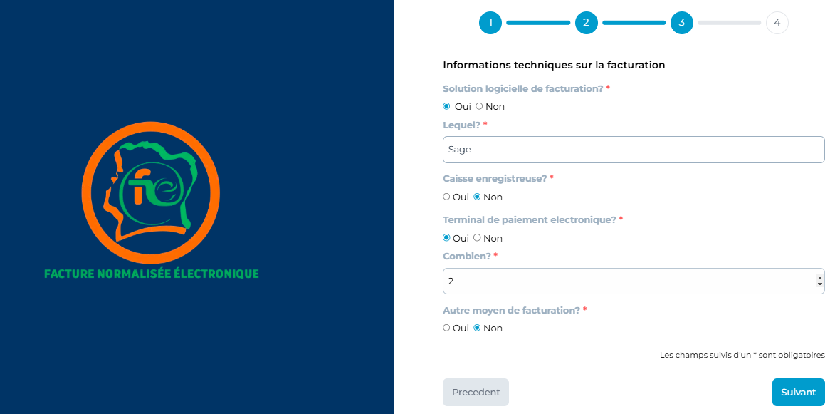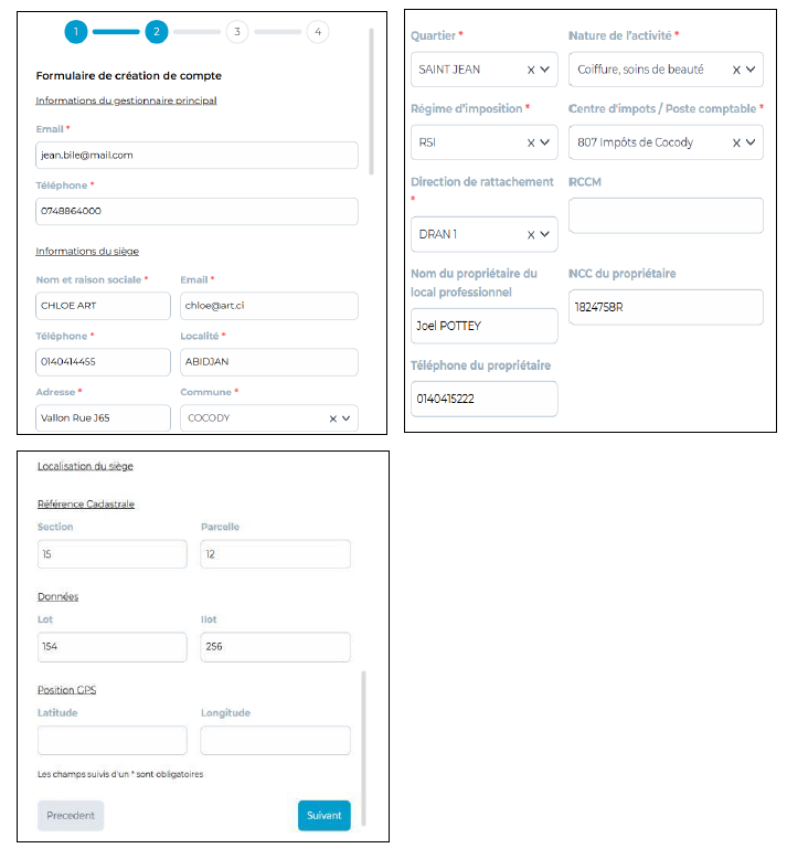 Etape 3 : renseignez ensuite le formulaire de création de compte. Cette session est relative aux informations de l’entreprise. Remplissez tous les champs et passez à l’étape suivante.